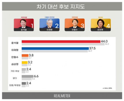 | ¼±°Å´ëÃ¥À§¿øÈ¸ ±¸¼º ¹®Á¦ µîÀ» µÑ·¯½Ñ ´ç³» °¥µî ¹®Á¦·Î À±¼®¿ ±¹¹ÎÀÇÈû ´ë¼±È帰¡ ÀÌÀç¸í ´õºÒ¾î¹ÎÁÖ´ç ´ë¼±Èĺ¸ÀÇ Ãß°ÝÀ» Çã¿ëÇßÁö¸¸, °¥µî »óȲÀÌ ºÀÇÕµÇ¸é¼ °ÝÂ÷°¡ ´Ù½Ã ¹ú¾îÁö´Â ¾ç»óÀÌ ¿©·ÐÁ¶»ç¿¡¼ È®ÀεƴÙ. 6ÀÏ ¿©·ÐÁ¶»ç Àü¹®±â°ü ¸®¾ó¹ÌÅͰ¡ ¿À¸¶ÀÌ´º½º ÀÇ·Ú·Î Áö³´Þ 29ÀϺÎÅÍ Áö³ 3ÀϱîÁö Àü±¹ ¸¸ 18¼¼ ÀÌ»ó À¯±ÇÀÚ 3054¸íÀ» ´ë»óÀ¸·Î ½Ç½ÃÇÑ ¼³¹®Á¶»ç °á°ú(Ç¥º»¿ÀÂ÷ 95% ½Å·Ú¼öÁØ¿¡¼ ¡¾1.8%Æ÷ÀÎÆ®)¿¡ µû¸£¸é À± È帴 Áö³ÁÖ Á¶»çº¸´Ù 2.3%Æ÷ÀÎÆ® ¶³¾îÁø 44%, ÀÌ È帴 0.6%Æ÷ÀÎÆ® ¿À¸¥ 37.5%·Î Á¶»çµÆ´Ù. Â÷ÀÌ´Â 9.4%Æ÷ÀÎÆ®¿¡¼ 6.5%Æ÷ÀÎÆ®·Î 2.9%Æ÷ÀÎÆ® Á¼ÇôÁ³´Ù. ½É»óÁ¤ Á¤ÀÇ´ç ´ë¼±È帴 3.2%, ¾Èö¼ö ±¹¹ÎÀÇÈû ´ë¼±È帴 3.8%·Î °¢°¢ ³ªÅ¸³µ´Ù. ![]() ´«±æÀ» ²ô´Â °ÍÀº ½Ã°£ È帧¿¡ µû¸¥ ¿©·Ð µ¿Çâ º¯È´Ù. ¸®¾ó¹ÌÅͰ¡ °ø°³ÇÑ Àϰ£ ¿©·Ð µ¿ÇâÀ» º¸¸é Áö³´Þ 29Àϸ¸ ÇØµµ À± È帴 11.9%Æ÷ÀÎÆ® ¾Õ¼¹Áö¸¸ Áö³´Þ 30ÀÏ 8.5%Æ÷ÀÎÆ®, 1ÀÏ 3.5%Æ÷ÀÎÆ®, 2ÀÏ 3.8%Æ÷ÀÎÆ®, 3ÀÏ 4.4%Æ÷ÀÎÆ®·Î ³ªÅ¸³µ´Ù. ÁÖÁß¿¡´Â ¿©·Ð °ÝÂ÷°¡ Á¼ÇôÁ³´Ù ´Ù½Ã ¹ú¾îÁö´Â ¾ç»óÀ» º¸¿´´Ù. |