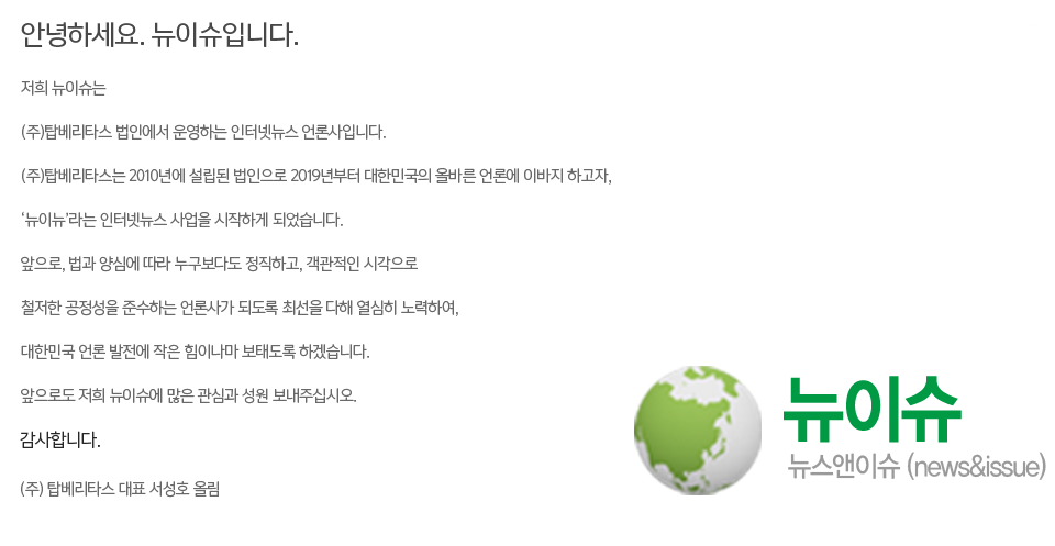 ´ºÀ̽´(newissue)ÀÇ ¸ðµç ÄÜÅÙÃ÷(¿µ»ó,±â»ç,»çÁø)´Â ÀúÀ۱ǹýÀÇ º¸È£¸¦ ¹Þ´Â ¹Ù, ¹«´ÜÀüÀç, º¹»ç, ¹èÆ÷ µîÀ» ±ÝÇÕ´Ï´Ù.